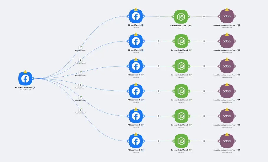 It sounded like a easy task at the first glance so we quickly set it. We created a simple flow connecting multiple forms to simultaneously fetch leads.